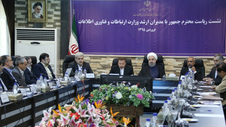 حجت الاسلام والمسلمین دکتر حسن روحانی رییس جمهوری صبح دوشنبه در نشستی با وزیر، معاونان و مدیران ارشد وزارت ارتباطات و فناوری اطلاعات، عملکرد، وضعیت و برنامه های این وزارتخانه را مورد بررسی قرار داد.