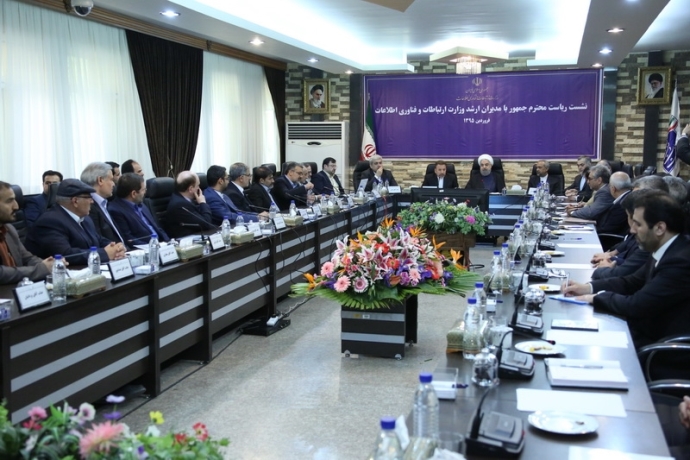 حجت الاسلام والمسلمین دکتر حسن روحانی رییس جمهوری در نشستی با وزیر، معاونان و مدیران ارشد وزارت ارتباطات و فناوری اطلاعات، عملکرد، وضعیت و برنامه های این وزارتخانه را مورد بررسی قرار داد.
