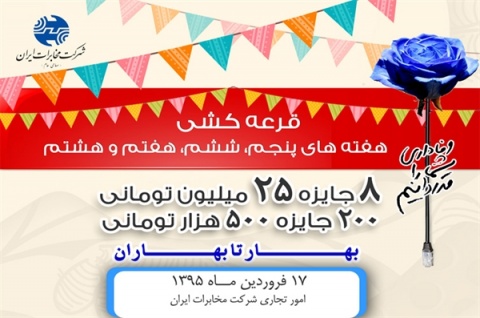 قرعه کشی هفته های پنجم تا هشتم جشنواره مشتریان وفادار (ADSL2+) شرکت مخابرات ایران و اولین دور این قرعه کشی در سال 1395، برگزار و طی آن برندگان هشت جایزه 250 میلیون ریالی و 200 جایزه 5 میلیون ریالی مشخص شدند.