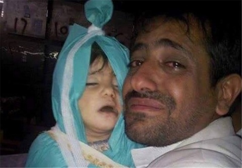 در این راستا تصاویر متعددی از کشتار مردم بی گناه یمن منتشر میشود. حسن شمشمادی در صفحه مجازی خود تصویری از یک پدر یمنی را منتشر کرده است که با پیکر بی جان کودک خود عکس گرفته است و آخرین وداع اشکآلود خود را به تصویر کشیده است: