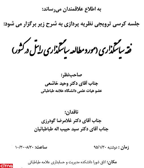 کرسی ترویجی «فقه سیاستگذاری؛ مورد مطالعه سیاستگذاری رایتل در کشور» در دانشگاه علامه طباطبایی (ره) برگزار می شود.