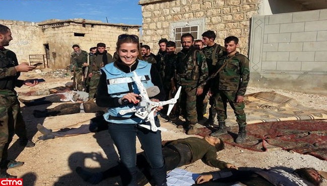 خانم " کنانه علوش" خبرنگار سوریه ای که دربسیاری از درگیری ها پابه پای نظامیان و نیروهای مردمی سوریه برای تهیه خبر و گزارش از نبردها پیش می رود ، در تازه ترین فعالیت خود تعدادی عکس با اجساد تروریست های داعش در شبکه های اجتماعی منتشر کرد.
