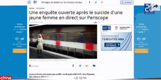 مقامهای پلیس فرانسه تحقیقاتی درباره فوت دختر جوانی آغاز کردند که با اپلیکیشن پریسکوپ گوشیهای هوشمند، لحظه خودکشی خود را به صورت آنلاین پخش کرد.