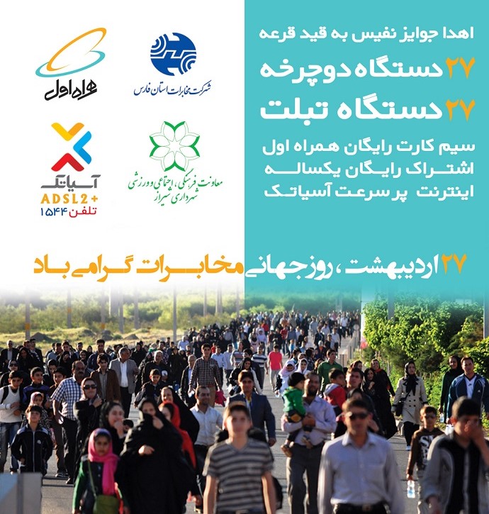 به گزارش سیتنا به نقل از روابط عمومی شرکت آسیاتک، این شرکت طی مشارکت مدنی با شهرداری شیراز، شرکت مخابرات استان فارس و اپراتور همراه اول و در راستای فرهنگ سازی و مسئولیت اجتماعی خود حامی «پیاده روی بزرگ خانوادگی» به مناسبت هفتهی ارتباطات و مخابرات که در روز جمعه مورخ 31 اردیبهشت ماه در شهر شیراز برگزار خواهد شد، شده است.
