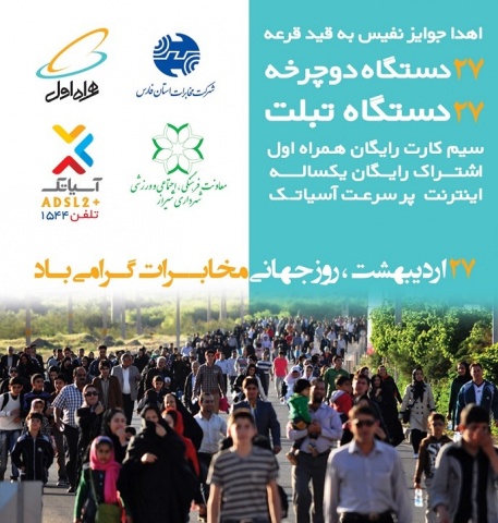 علاقمندان به شرکت در این راهپیمایی می توانند در روز جمعه 31 اردیبهشت، ساعت 7 صبح مقابل بیمارستان چمران واقع در بلوار چمران شهر شیراز حضور بهم رسانند. همچنین در این مراسم به رسم یادبود از سوی شرکت انتقال داده های آسیاتک هدایای ارزنده ای به شرکت کنندگان در این پیاده روی اهدا خواهد گردید.