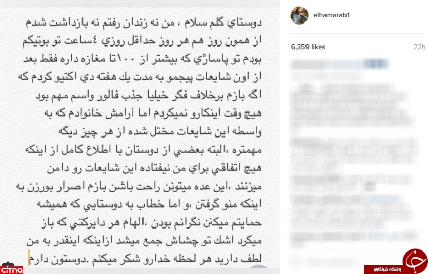 حالا این مدل معروف بعد از چند روز غیر فعال بودن و بسته شدن صفحه اینستاگرامش اقدام به انتشار پست های جدید کرده است که در یکی از این پست ها به صراحت به عدم دستگیری خود اذعان داشته و گفته است : فقط برای چند روز صفحه اینستاگرامم را غیر فعال نموده ام