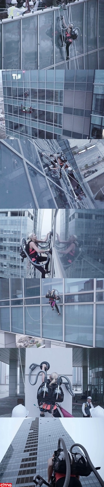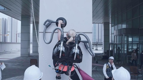 صخره نورد حرفهای Sierra Blair-Coyle توانست با تنها دو دستگاه جارو برقی مدل CordZero شرکت الجی که به پشت خود بسته بود از یک برج 140 متری صعود کند.
