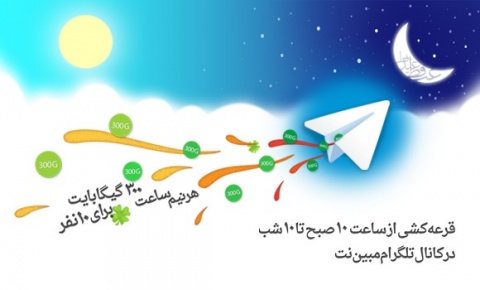 در این کانال از ساعت 10 صبح تا 10 شب هر نیم ساعت به 10 نفر به قید قرعه یک ماه زمان و در مجموع 300 گیگ حجم رایگان تعلق خواهد گرفت.
