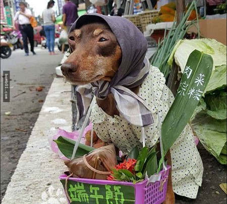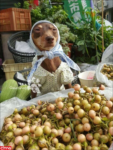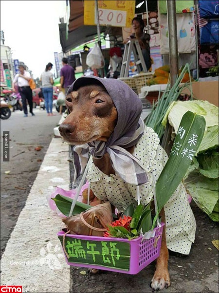 به گزارش سیتنا به نقل از سایت صدای چین، به تازگی تصاویر یک سگ هفت ساله به نام شیائوپی در فضای مجازی با استقبال زیادی روبه رو شده است. او در این تصاویر لباس فروشندگان مختلف را به تن دارد و با صاحبش در تایوان فروشندگی می کند.