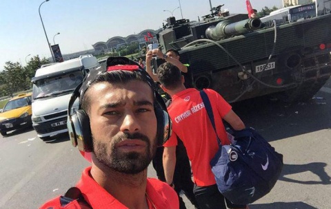 به گزارش سیتنا، رامین رضائیان که این روزها در تیم ریزه اسپور ترکیه بازی می کند بعد از کودتای ارتش ترکیه با تانک های کودتاچیان عکس سلفی گرفت و در فضای مجازی منتشر کرد.