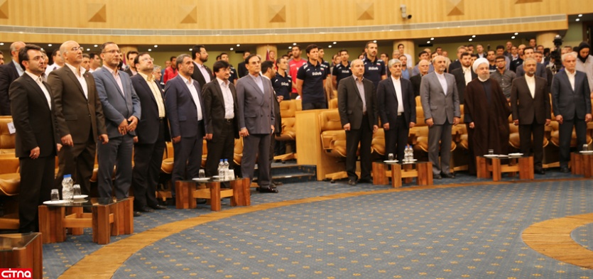 همچنین در این مراسم دکتر حسن روحانی رئیس جمهور برای ورزشکاران سخنرانی کرد و از اهمیت ورزش در جامعه و بالا رفتن شور نشاط عمومی در پی موفقیت های ورزشی سخت گفت.