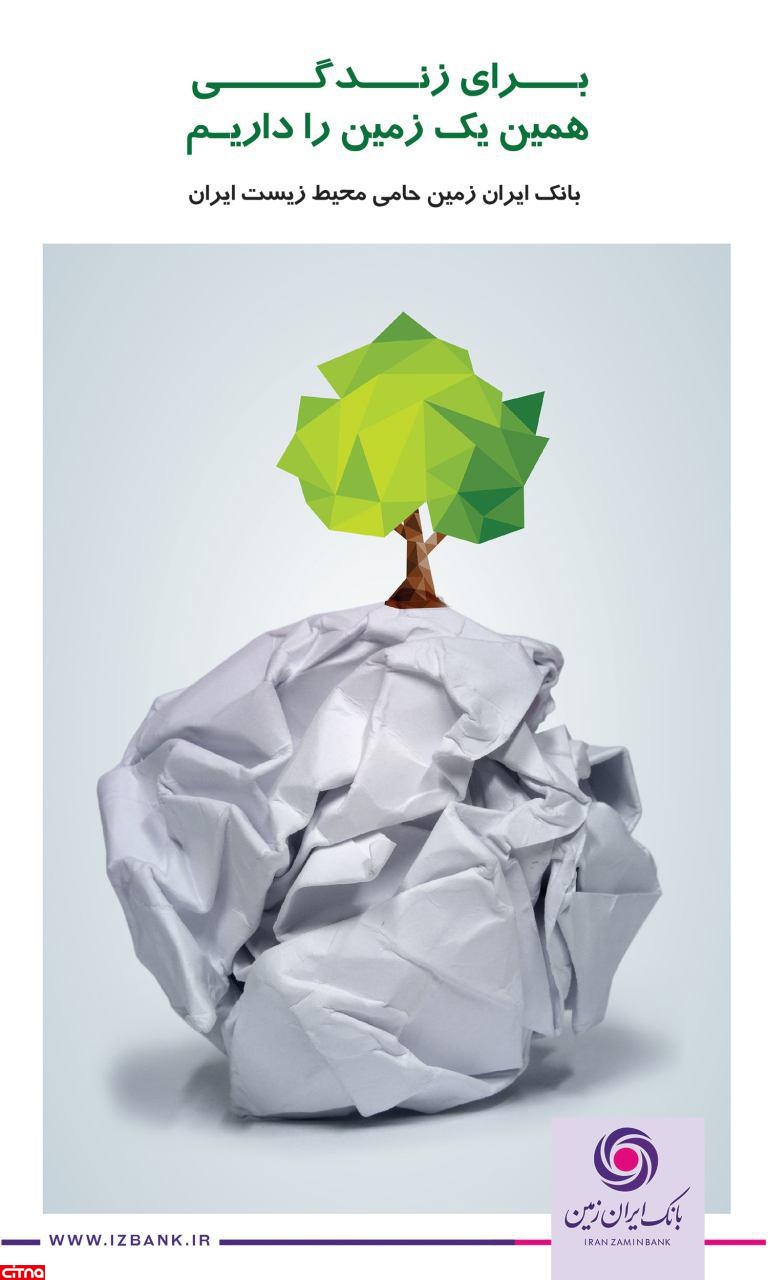 بانک ایران زمین در راستای احترام به منابع طبیعی، اجرای مسئولیت اجتماعی در حوزه محیط زیست و سرعت بخشیدن به پیگیری امور اداری با تکمیل فرایند اتوماسیون، کاغذ را از مکاتبات اداری خود حذف کرد.