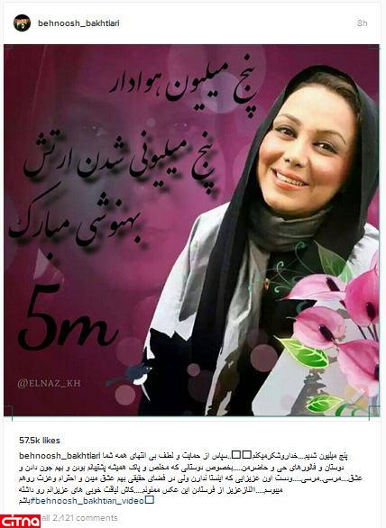 شمار فالوئرهای حساب اینستاگرام بهنوش بختیاری، بازیگر سینما و تلویزیون که به تازگی در کسوت مجریگری نیز ظاهر شده، به پنج میلیون رسیده و تعداد فالوئرهای سایر سلبریتیهای ایرانی را نیز به چالش کشیده است؛ اما این تعداد فالوئر در دنیای کنونی و به ویژه در سینمای ایران چه کارکردی میتواند داشته باشد؟