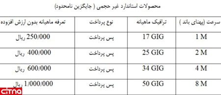 تعرفه خدمات دسترسی به اینترنت پرسرعت غیرحجمی طبق جدول زیر است: