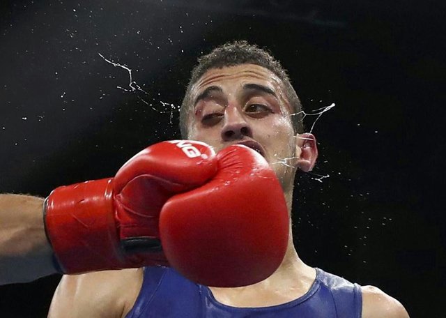 محمد فلیسی در جریان مسابقات بوکس.