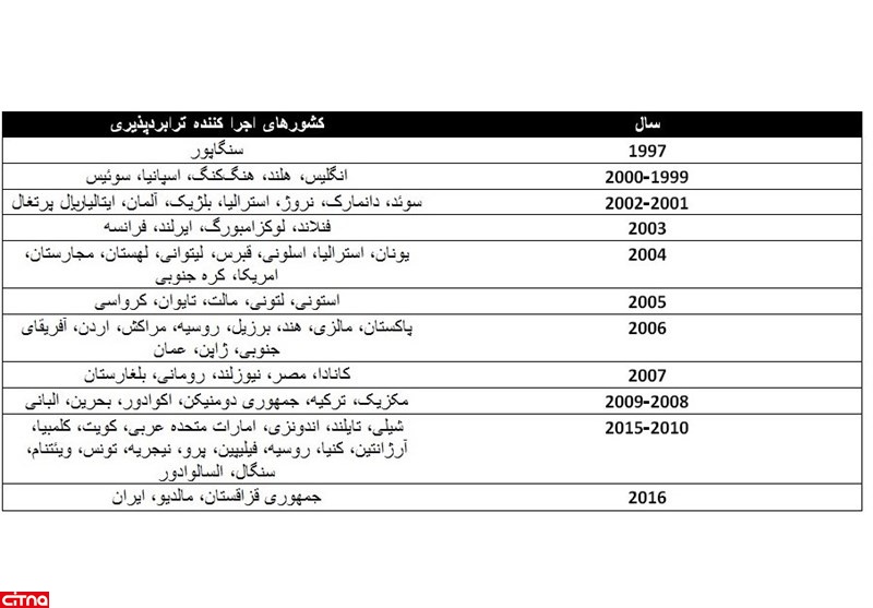 کشورهایی که قبل از ایران ترابردپذیری را اجرا کردند