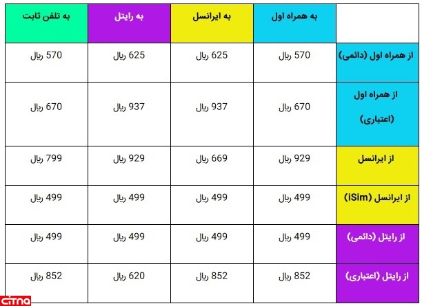 جدول مقایسهی تعرفهی مکالمهی اپراتورهای تلفن همراه