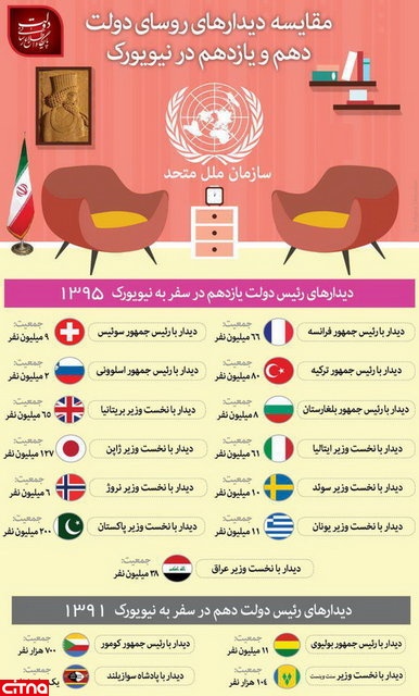 پایگاه اطلاعرسانی دولت در اینفوگرافی به مقایسه دیدارهای روحانی و احمدینژاد در سفر به نیویورک پرداخت.
