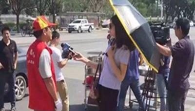 یک گزارشگر تلویزیونی در چین به دلیل استفاده از چتر و عینک آفتابی هنگام تهیه گزارش از کار تعلیق شد.