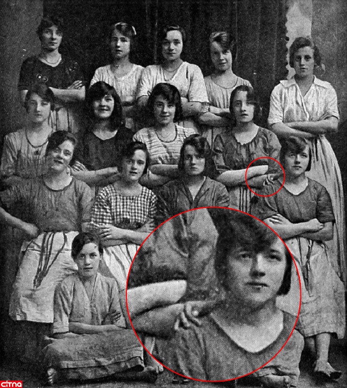 در این تصویر، 15 دختر به چشم می خورند که گفته می شود در یک آسیاب کار می کردند. همه این دختران دستهایشان را به صورت ضربدری قرار داده اند. اما نکته عجیب، وجود یک دست بر روی کتف یکی از دختران در سمت چپ ردیف دوم است. این در حالی است که دختری که پشت سر وی ایستاده است، دستهای خود را به حالت ضربدری روی هم گذاشته است و به عبارت دیگر، دست روی کتف دختر ردیف دوم، متعلق به دختر ردیف اول نیست. این امر باعث شده است تا عده ای بر این باور باشند که دست مذکور، متعلق به یک شبح یا فردی که در تصویر نشان داده نشده است باشد.