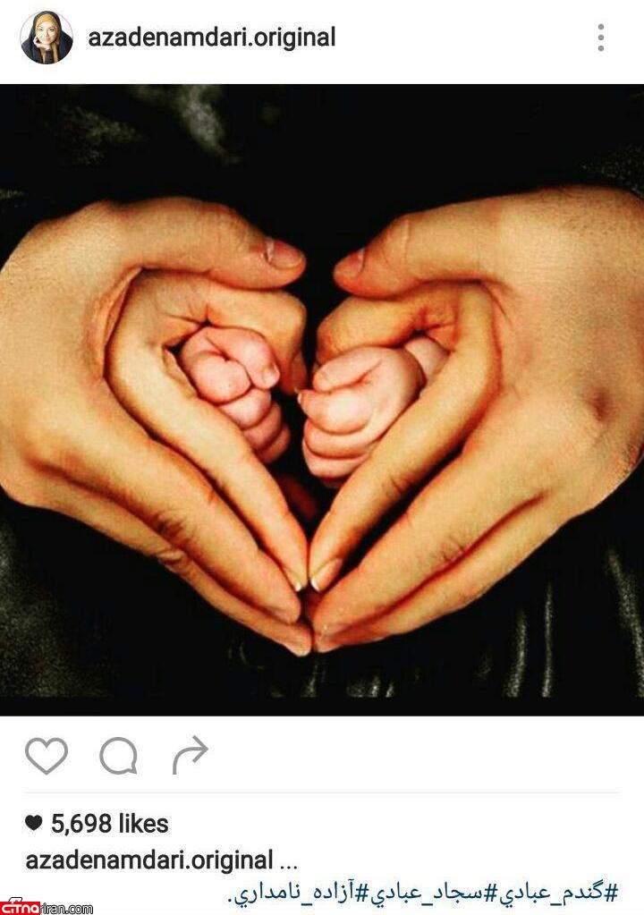 آزاده نامداری با انتشار عکسی در اینستاگرامش از تولد فرزندش در پنجم مهرماه خبر داد. فرزند او «گندم عبادی» نام دارد.