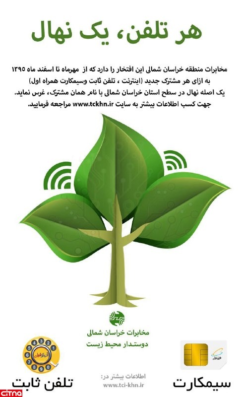 مخابرات منطقه خراسان شمالی در طرحی ابتکاری به ازاء هر مشترک جدید یک اصله نهال به نام همان مشترک در سطح خراسان شمالی غرس می کند.
