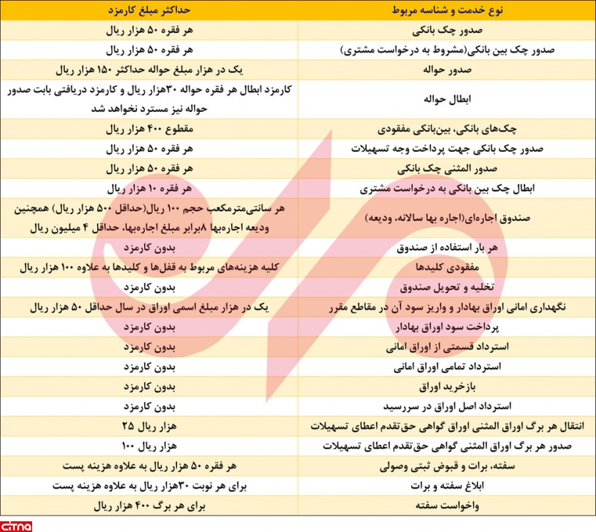 در همین حال، خبرگزاری مهر فهرست کامل عمدهترین نرخهای جدید کارمزدهای بانکی را منتشر کرد: