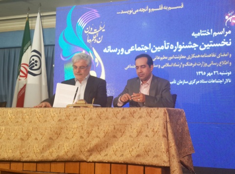 تفاهم نامه همکاری بین سازمان تامین اجتماعی و معاونت امور مطبوعاتی وزارت فرهنگ و ارشاد اسلامی با محوریت رسیدگی ویژه به مشکلات بیمه ای اصحاب رسانه و موسسات مطبوعاتی با حضور مدیر عامل سازمان تأمین اجتماعی و معاون مطبوعاتی وزیر فرهنگ و ارشاد اسلامی امضا شد.