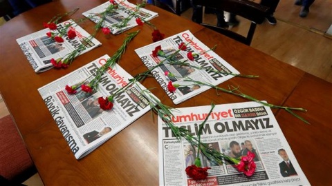 روزنامه جمهوریت ترکیه یک روز پس از بازداشت سردبیر و شماری از اعضای تحریریه آن، با تیتر «تسلیم نمیشویم» بر صفحه نخست آن، منتشر شد.