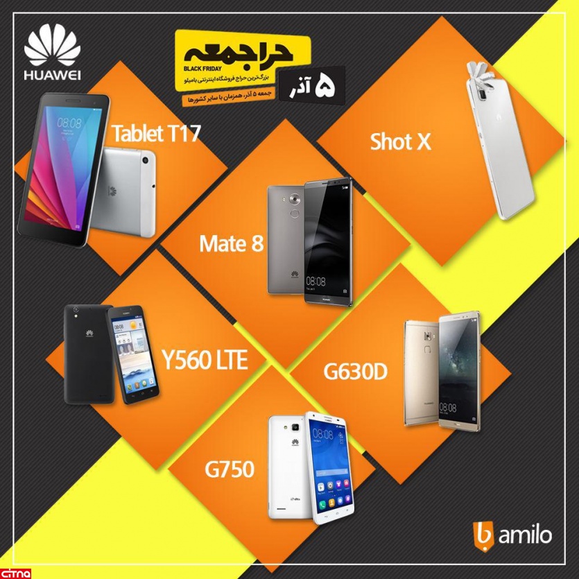 شرکت هواوی برخی از محصولات خود را در حراجمعه یا Black Friday فروشگاه اینترنتی بامیلو در تاریخ 5 آذر به فروش می رساند.