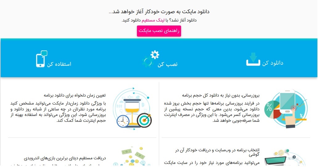 همچنین با سرویس مای گارانتی مایکت کاربران می توانند هر نرم افزار یا بازی را به راحتی خریداری کرده و در صورت عدم رضایت تا یک ساعت باز پس دهند.