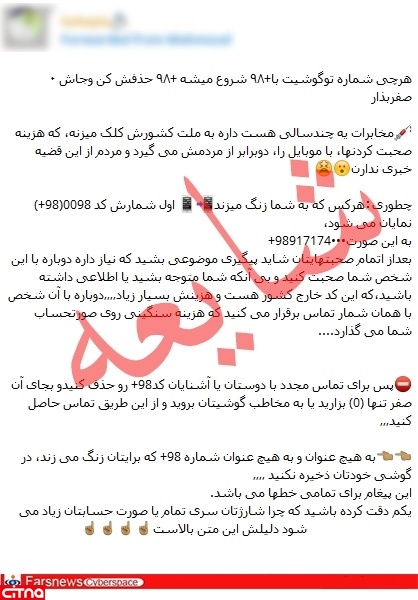 به گزارش سیتنا، به تازگی در شبکههای اجتماعی پیامی منتشر شده مبنی بر این که مخابرات هزینه تماس با پیش شماره های 0098 و 98+ را دو برابر گران تر از هزینه تماس با پیش شماره صفر می گیرد.