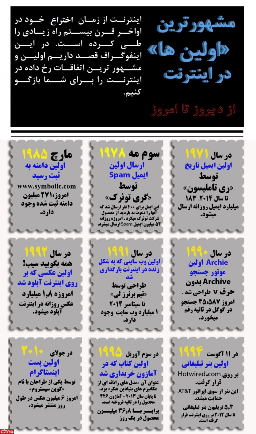 به گزارش سیتنا، در اینفوگراف زیر تلاش شده است تا اولین رویدادهای مشهور در اینترنت را برای شما تشریح کنیم: