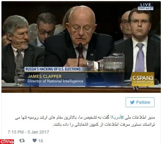 جیمز کلپر، مدیر اطلاعات ملی آمریکا در جلسه کمیته نیروهای مسلح سنای آمریکا گفت برعکس شک و تردید دونالد ترامپ رئیس جمهوری منتخب آمریکا، او به نسبت قبل مطمئن تر است که بگوید حمله های سایبری به کارزار دموکرات ها در انتخابات گذشته، توسط مقام های عالی روسیه تدارک شده بود.