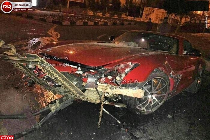 تصادف شدید مرسدس بنز SLS در شهر تبریز، که نمونه پلاک شده این خودرو در ایران نزدیک به ۵میلیارد تومان قیمت دارد.