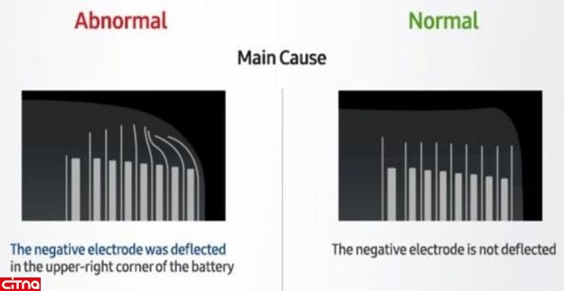 تحقیقات سامسونگ در ارتباط با داغ کردن و در مواردی آتش گرفتن گوشیهای گلکسی نوت ۷ به این نتیجه رسیده که علت، وجود ایرادهایی در باتریهایشان بود.