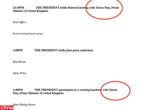کاخ سفید در متن برنامه کاری روز جمعه خود که برای خبرنگاران آماده کرده بود سه مرتبه نام نخست وزیر بریتانیا را به اشتباه نوشته است که مشابه نام یک بازیگر بریتانیایی فیلم های " پورن " است.