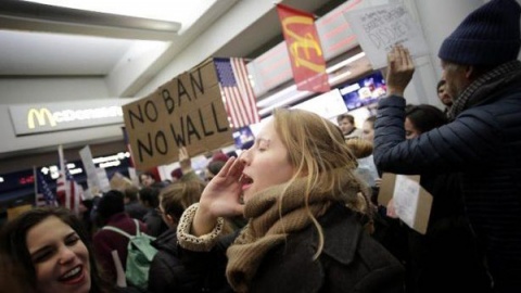 صدها تن از یهودیان آمریکا روز یکشنبه 29 ژانویه 2017 در خارج محیط فرودگاه بین المللی JFK نیویورک با بلندکردن پلاکارهایی که بر آنها شعار «نه به منع ورود مسلمانان به آمریکا ...نه به کشیدن دیوار در مرزها» علیه دونالد ترامپ شعار دادند.