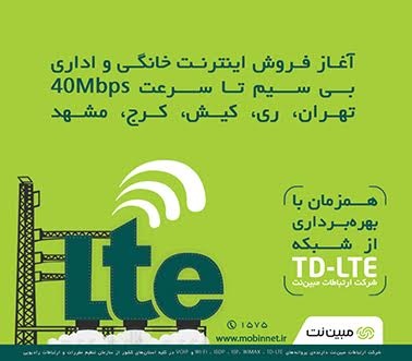 آغاز فروش TD-LTE مبیننت تا سرعت 40 مگابیت در 5 شهر