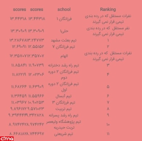 سایت ای سی تی پرس نوشت: در این دوره تیم های شرکت کننده از مدارس مختلف شهر تهران و شهرستان های دیگر در دو مرحله به رقابت پرداختند.