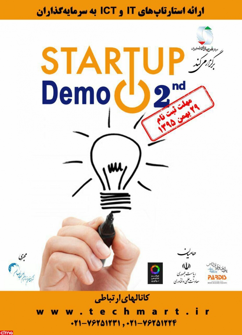 مرکز فن بازار ملی ایران در نظر دارد به منظور جذب سرمایه برای استارتاپ ها و شرکت های نوپای حوزه ارتباطات و فناوری اطلاعات دومین رویداد Startup Demo را در روز 10 اسفندماه 95 در محل دانشگاه علم و صنعت ایران برگزار نماید.