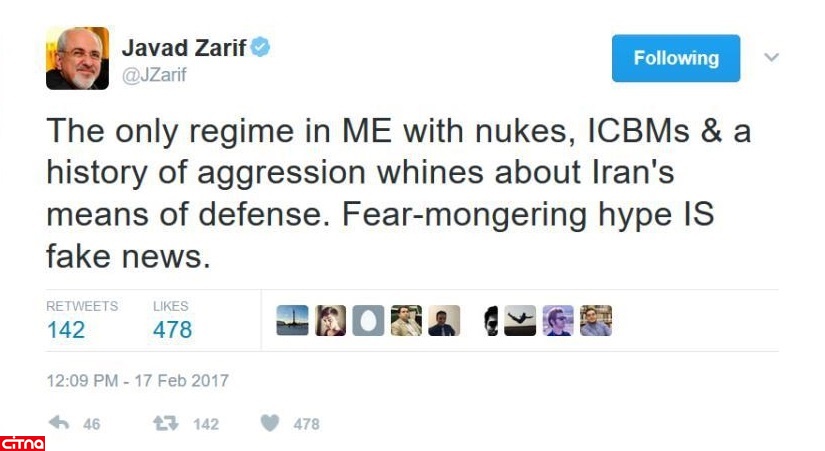 تنها رژیم دارای سلاح هسته ای و موشک های بالستیک قارهپیما در خاورمیانه با تاریخی مملو از تجاوزگری، ابزارهای دفاع مشروع ایران از خود را با اخبارجعلی، دستمایه ایران هراسی کرده است.