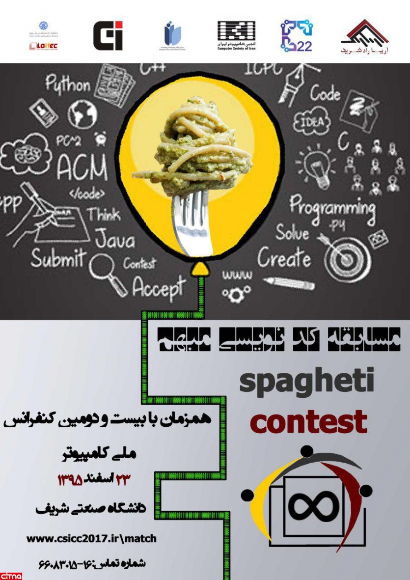 مسابقه کدنویسی مبهم (Spaghetti contest) همزمان با بیست و دومین کنفرانس ملی کامپیوتر ایران به عنوان معتبرترین کنفرانس علمی کشور در حوزه کامپیوتر و فناوری اطلاعات، در تاریخ 23 اسفندماه 1395 در دانشگاه صنعتی شریف برگزار می شود.