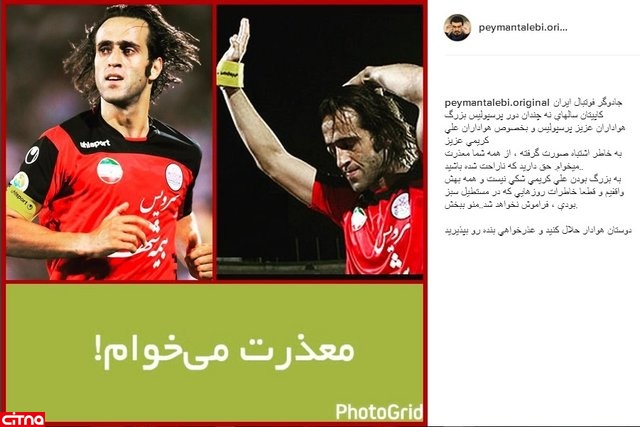 به گزارش سیتنا، خبرآنلاین در این باره نوشت: «پیمان طالبی، مجری برنامه «مردم چی میگن؟» در اینستاگرامش نوشت: «جادوگر فوتبال ایران، کاپیتان سالهای نه چندان دور پرسپولیس بزرگ، هواداران عزیز پرسپولیس و به خصوص هواداران علی کریمی عزیز به خاطر اشتباه صورت گرفته، از همه شما معذرت میخوام. حق دارید که ناراحت شده باشید. به بزرگ بودن علی کریمی شکی نیست و همه بهش واقفیم و قطعا خاطرات روزهایی که در مستطیل سبز بودی، فراموش نخواهد شد. منو ببخش. دوستان هوادار حلال کنید و عذرخواهی بنده رو بپذیرید.»