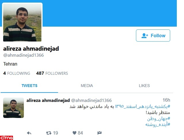 به گزارش سرویس وبگردی سیتنا، علیرضا احمدی نژاد توئیت کرد: