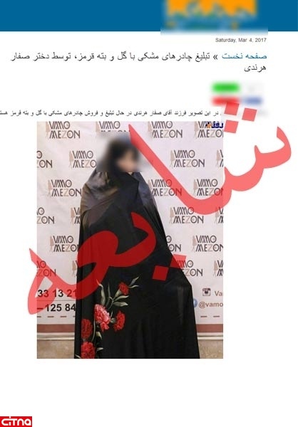 به گزارش سیتنا، خبرگزاری فارس نوشت: به تازگی تصویری در شبکههای اجتماعی و سایتهای ضدانقلاب دست به دست شده که منتشرکنندگان آن مدعی شدهاند تصویر دختر محمدحسین صفارهرندی، وزیر ارشاد دولت نهم است که در حال ترویج و فروش چادر مشکی طرحدار است.