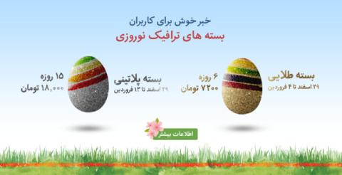همچنین بسته طلایی ترافیک نوروزی نیز در این جشنواره به قیمت ۷،۲۰۰ تومان ارایه میشود که با استفاده از آن مشتریان میتوانند از ۶ روز ترافیک نامحدود (از ۲۹ اسفند تا ۴ فروردین) بهرهمند شوند.