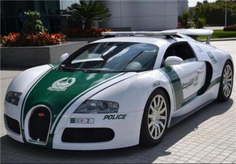 سریعترین اتومبیل پلیس جهان که در خیابانهای دبی تردد میکند «بوگاتی وِیرون» است که البته باید توجه داشت تنها 14 دستگاه از این خودرو ساخته شده است و هماکنون یکی از آنها به عنوان پلیس دبی در خیابانهای این شهر گشتزنی میکند.