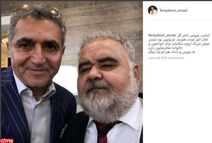 سلفی خواننده پاپ با اکبر عبدی در مراسم عروسی دخترش