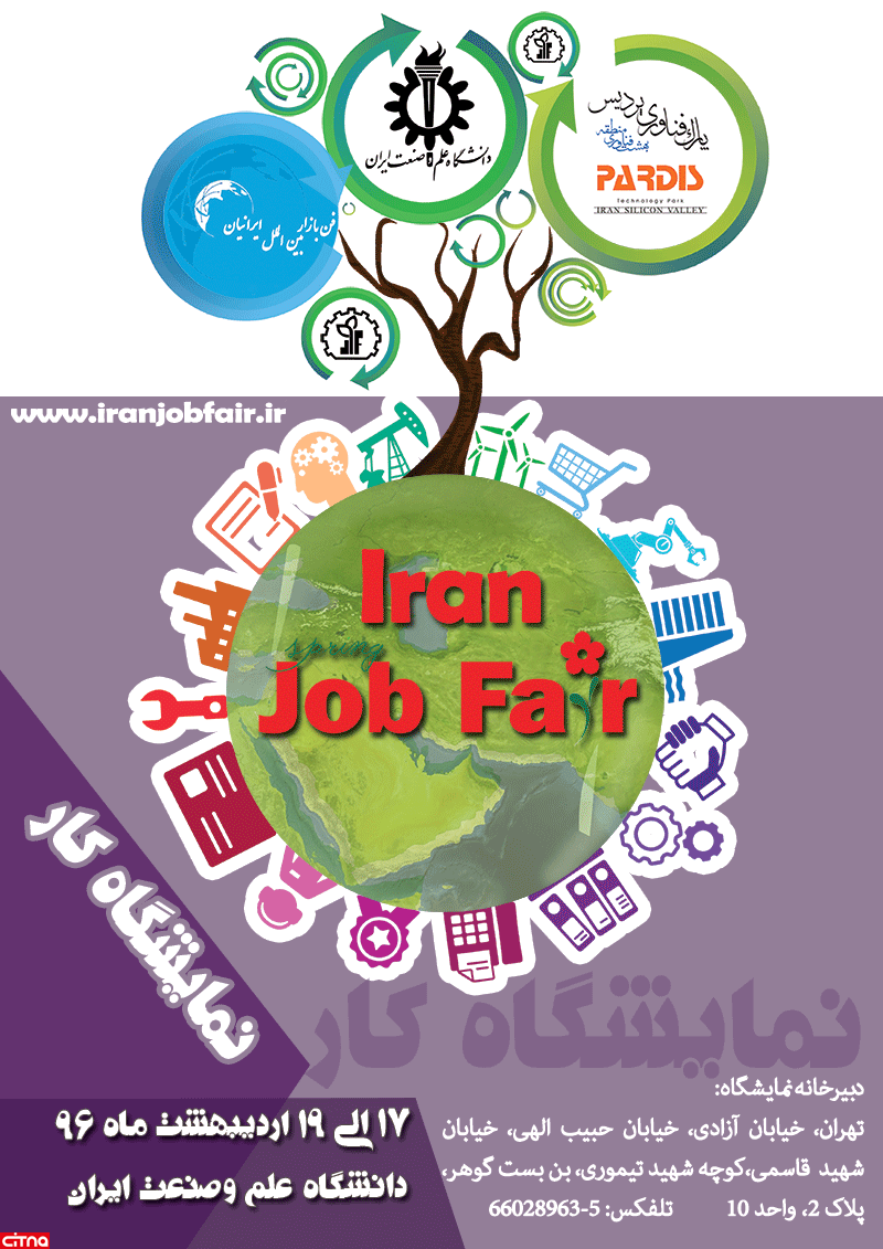 بر این اساس معاونت علمی ریاست جمهوری و پارک فناوری پردیس در نظر دارند "نمایشگاه کار دانشگاه علم و صنعت ایران (iran jobfair)" را در تاریخ 17 الی 19 اردیبهشت ماه سال 1396 و در محل دانشگاه علم و صنعت ایران برگزار نماید.